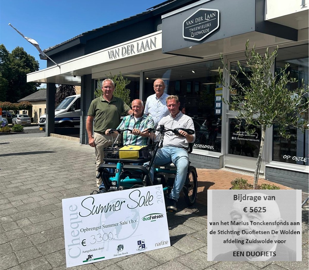 Aanbieding van een duofiets aan Stichting Duofietsen de Wolden afd. Zuidwolde (2025), gesponsord door Stichting Het Marius Tonckensfonds.